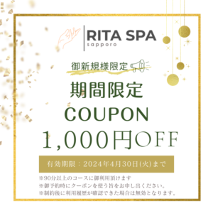 初めてRITA SPA札幌店をご利用のご新規様に限り、1,000円OFFのキャンペーン第2弾を開催致します!